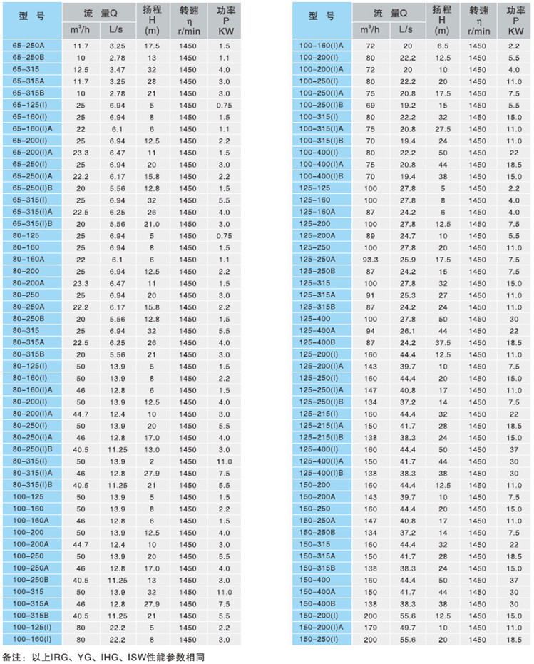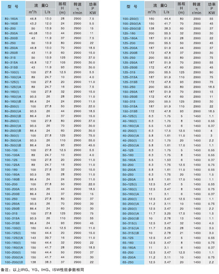 注:如使用介质为带有细小颗粒,请在订货时说明,以便厂家采用耐磨式机械密封。